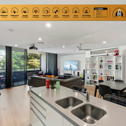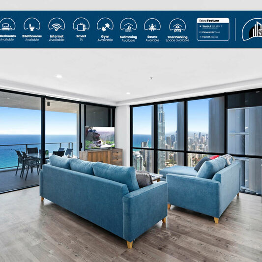 The Circle Skyrise and HighRise resort contains two supertowers of 48 (SkyRise) and 67 stories (HighRise) respectively, and is located in the heart of the revitalised Surfers Paradise. Both towers are joined on level 4 lounge which takes in the spectacular view of the Nerang River. The resort is only 500 meters from the beach, an easy stroll. It offers large, comfortable and spacious apartments equipped with stylish gourmet kitchen and open plan living perfect for entertainment, with a variety of floorplans and aspects, luxury 4.5 star resort facilities, including 3 pools - Lagoon pool with water features (North Tower), 25m heated indoor swimming pool (North Tower) and 25m lap pool and 10-seater spa on sun terrace (South Tower), In-house cinema room, Barbeque & entertaining areas, large fully equipped gym, spa, sauna and steam room facilities, games room, children’s play area. The ground floor piazza opens out on to the heart of Surfers Paradise with fine restaurants, dining, luxury retail stores close by, Woolworths Circle on Cavill and also sports a large outdoor TV screen. It is also ideally located for easy transport to theme parks, from the bus stop directly outside the complex.